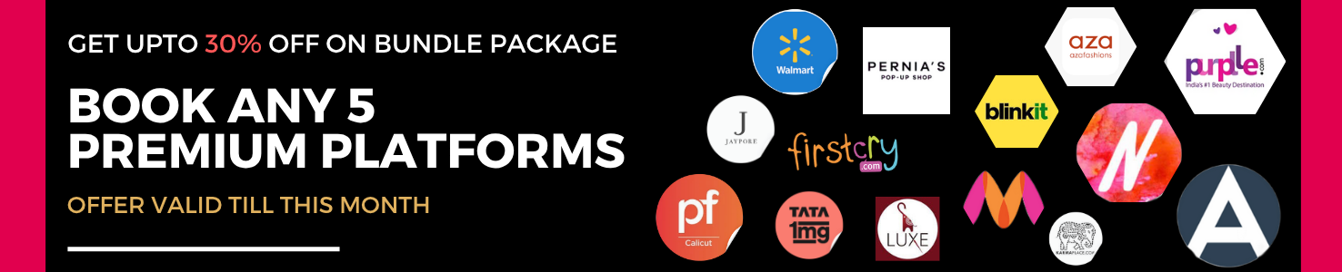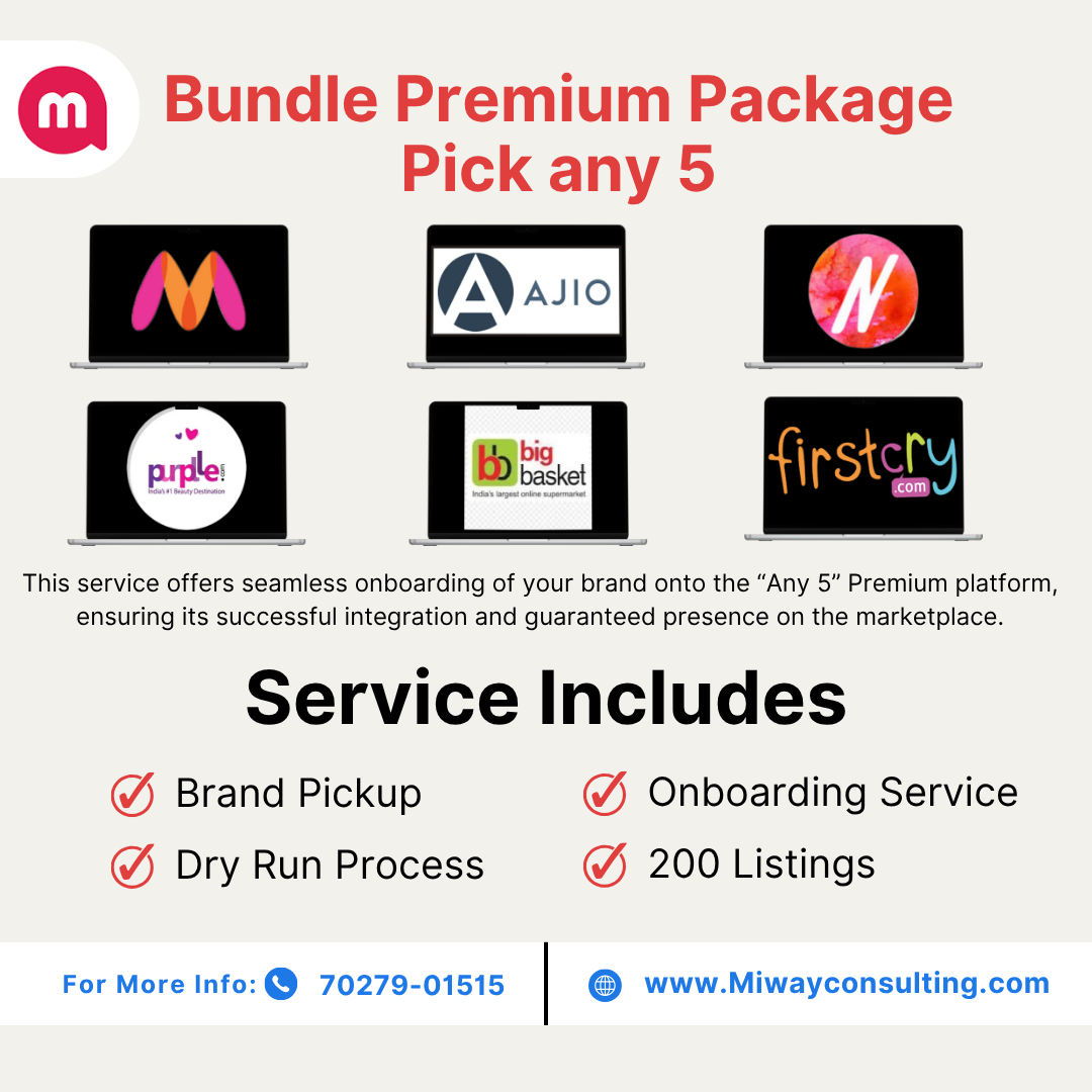 Our Bundle Package helps your brand get listed on six leading premium marketplaces at a price of 5 including Myntra, Nykaa, Tata CLiQ, Ajio, and more.